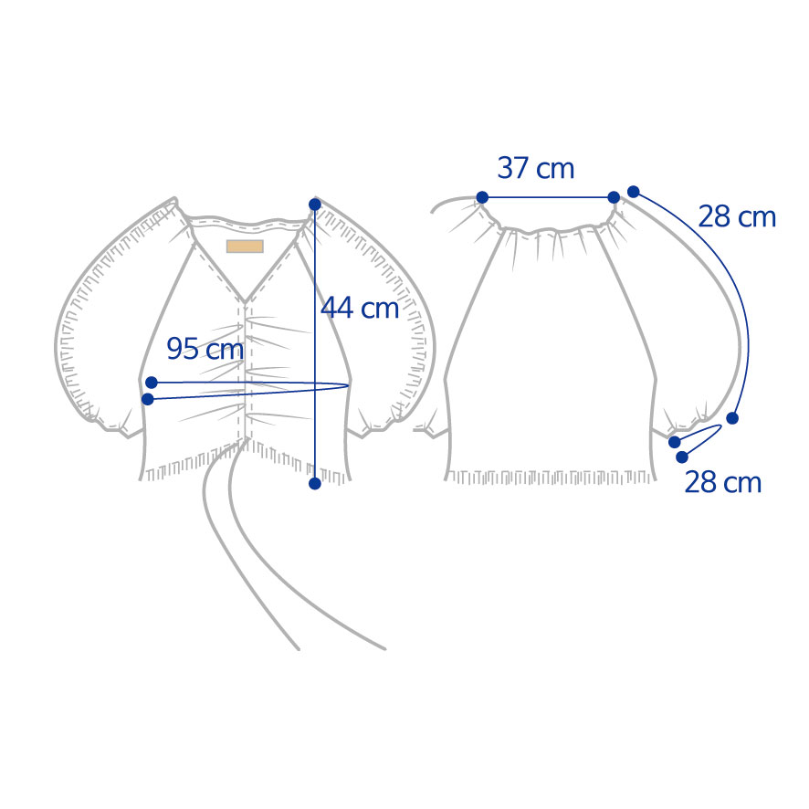 Length 44 / Shoulder width 37 / Chest 95/ Sleeve Length 28 / Sleeve Opening 28