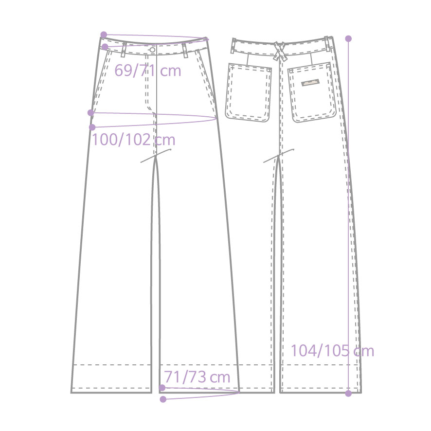 M_ Length 105 / Waist 71 / Hip 102 / Leg Opening 73