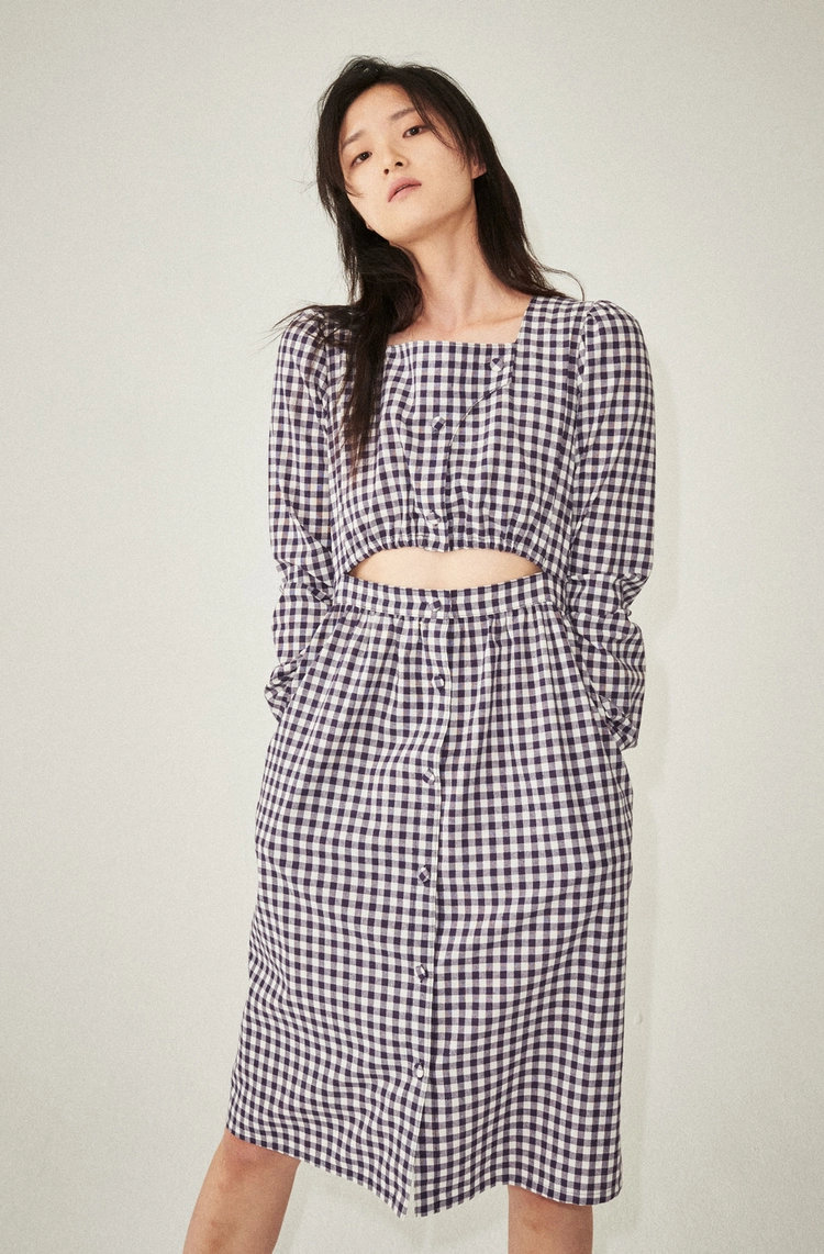 셔츠 카라 미디 드레스입니다.